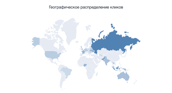• Кликтердің географиялық таратылуының статистикасы барлық серіктестік әрекет уақытында ең көп өтуді жасаған елдерді көрсетеді.