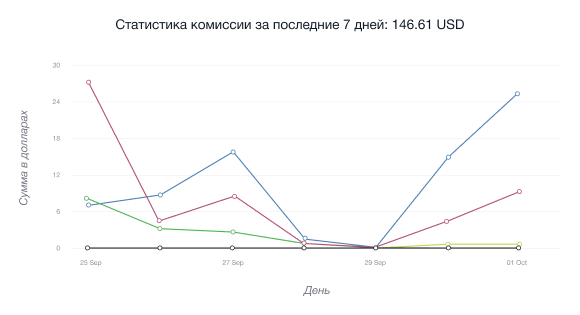 • Графика сіздің серіктестік сілтемеңізге және серіктестік меткаларға барлық рефералдардың жалпы өтудер санын көрсетеді таңдалған уақыт периодына.