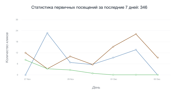 • Бұл графика алғаш рет серіктестік сілтемеге немесе меткага өткен келушілер санын көрсетеді.