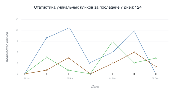 • Бірегей кликтердің графикасы соңғы 24 сағат ішінде анық IP мекенжайдан алғаш рет өткен келушілер санын көрсетеді.